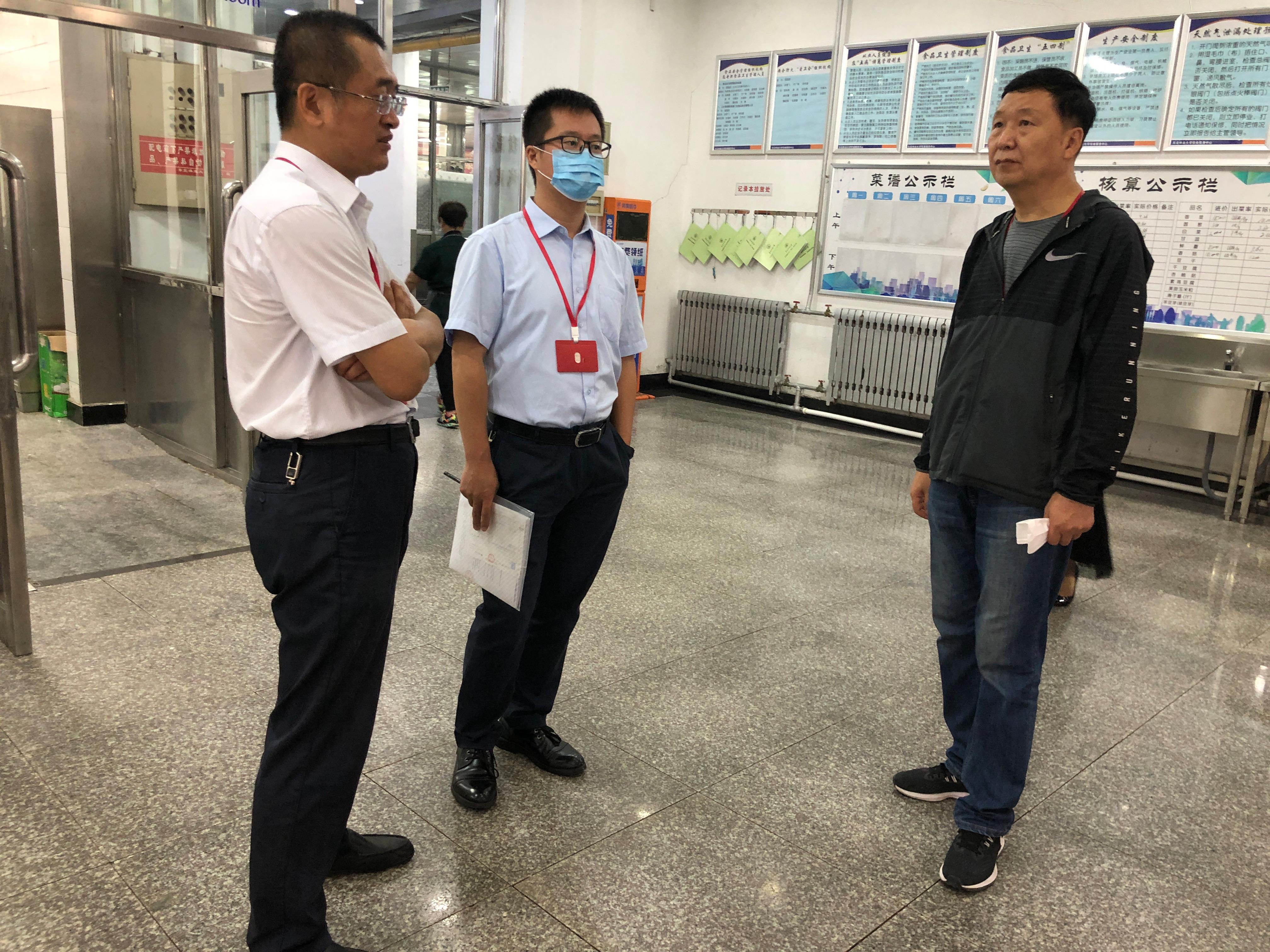 为将工作做实、做细,9月7日,后勤保障部部长刘庆国、党总支书记尹承增带队组成检查组先后深入食堂、宿舍、浴池、商服、快递等部门,重点检查了各部门安全责任落实情况、消防安全、电气安全、食品饮用水安全、宿舍安全以及防疫安全等工作。各部门负责人汇报了自检自查相关情况及迎新准备情况。